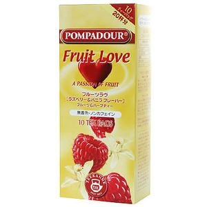 「ポンパドール フルーツラブ 10TB」は、ラズベリーの甘酸っぱさにバニラのほんのり甘い香りがマッチしたブレンドハーブティーです。明るく透き通りルビーレッドの色が美しく、ほんのり甘くやさしい味わいです。ハイビスカスティー(ハイビスカス茶)、ローズヒップティー(ローズヒップ茶)、アップルティー(アップル茶)、オレンジピールティー(オレンジピール茶)、エルダーベリーティー(エルダーベリー茶)、ペパーミントティー(ペパーミント茶)を美味しくブレンドしています。 内容量:30g(3g*10袋) 輸入元:日本緑茶センター