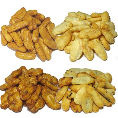 原材料:有機餅米(国産みやこがね)・有機醤油・有機認定砂糖・みりん・北海道日高産昆布・枕崎水揚げカツオのかつお節・唐辛子・海老・白醤油・落花生・国産無農薬栽培胡麻・海苔(九州有明産 酸処理をしていない海苔)