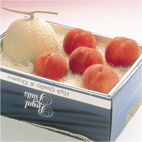 高知マスクメロン約1.3Kg×1、山梨県産桃約230g×5
